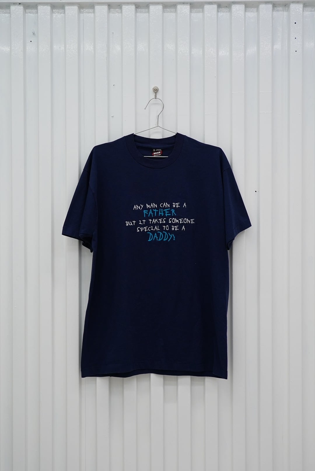 「FATHER」と「DADDY」の違いを語る、ウィットに富んだ90年代のメッセージ刺繍T。