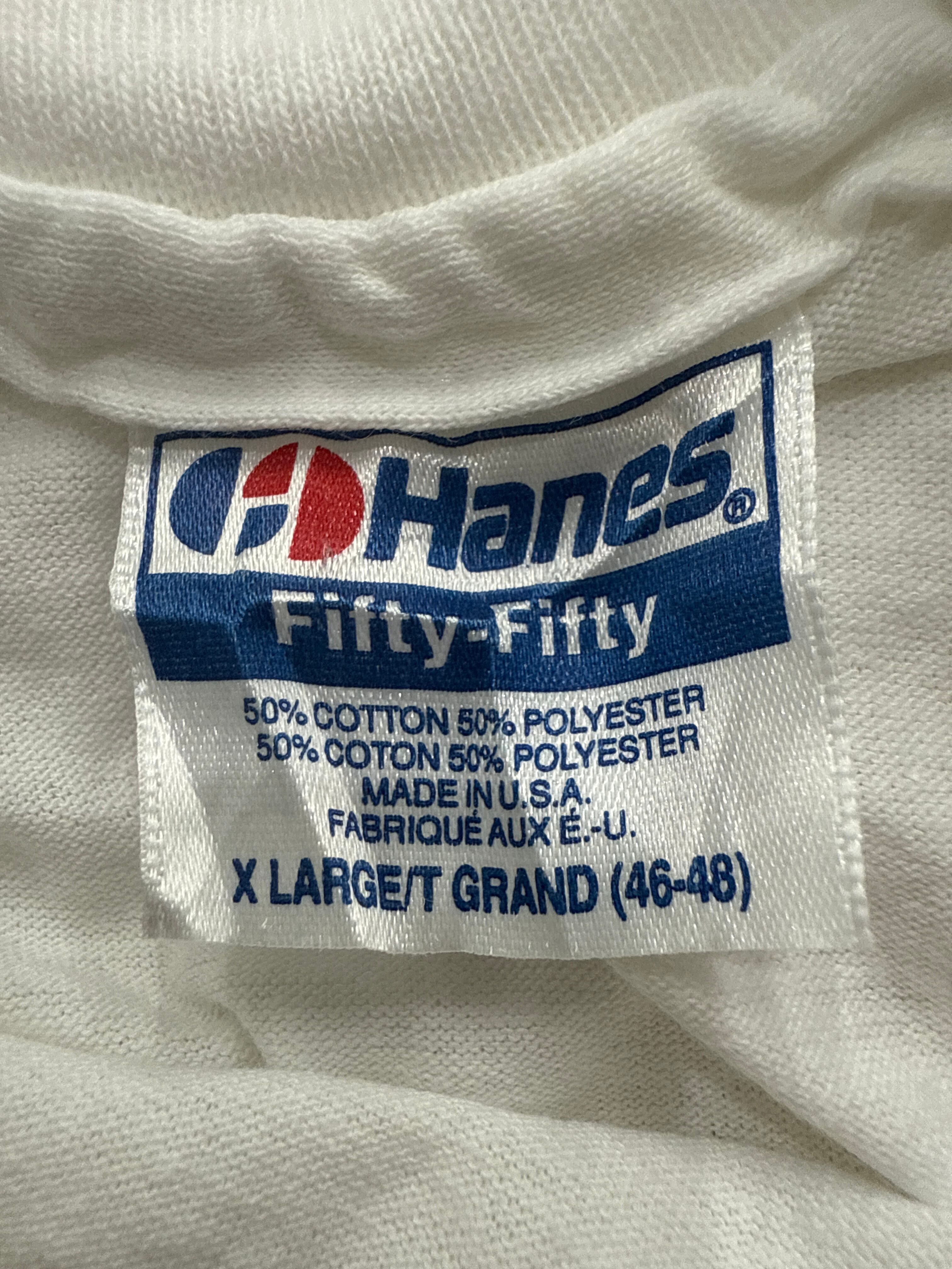 ボディはHanes Fifty-FiftyのUSA製丸胴ボディ。サイズはゆったり目のXL。ユーモアとヴィンテージの香りをまとった、味わい深い一枚。