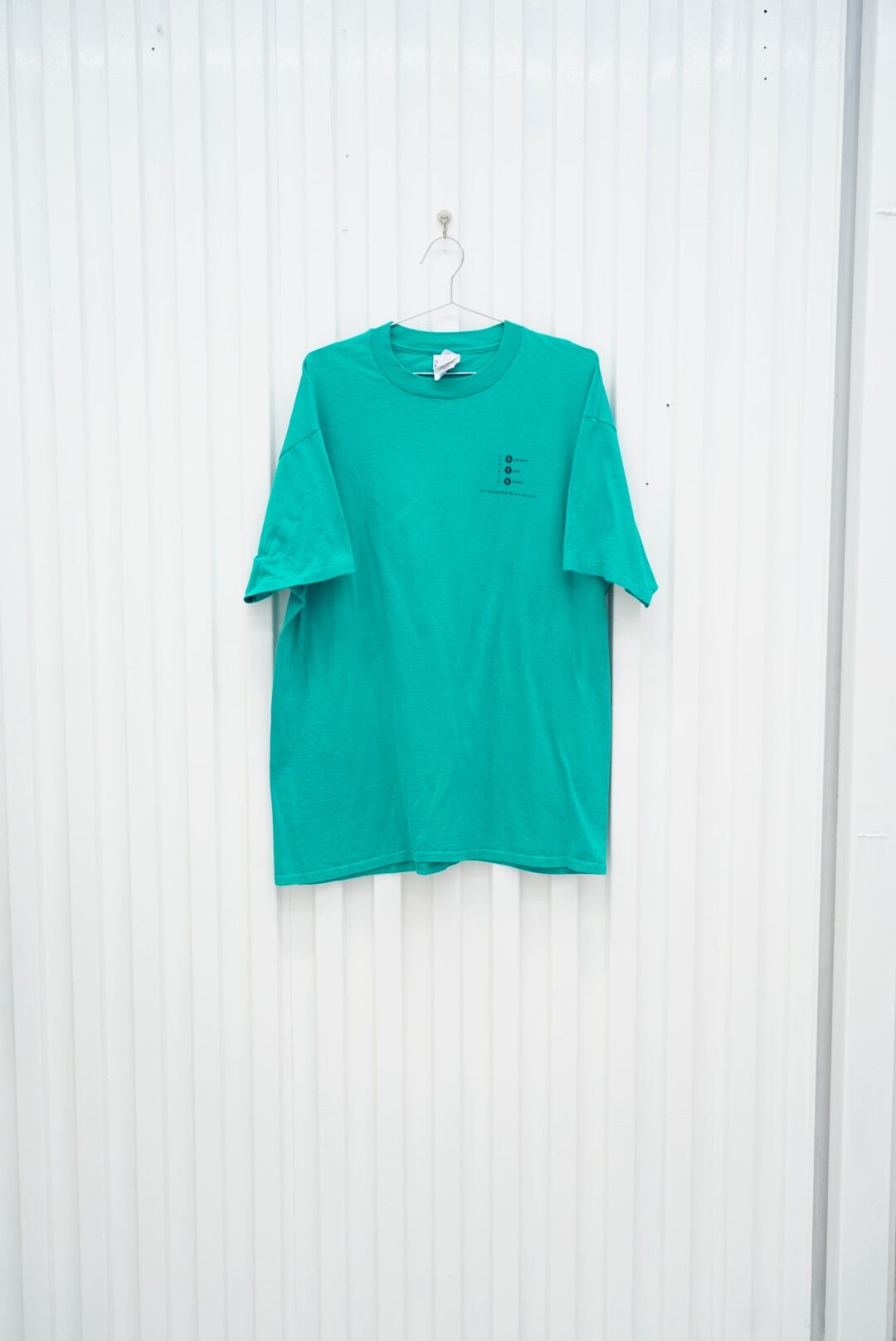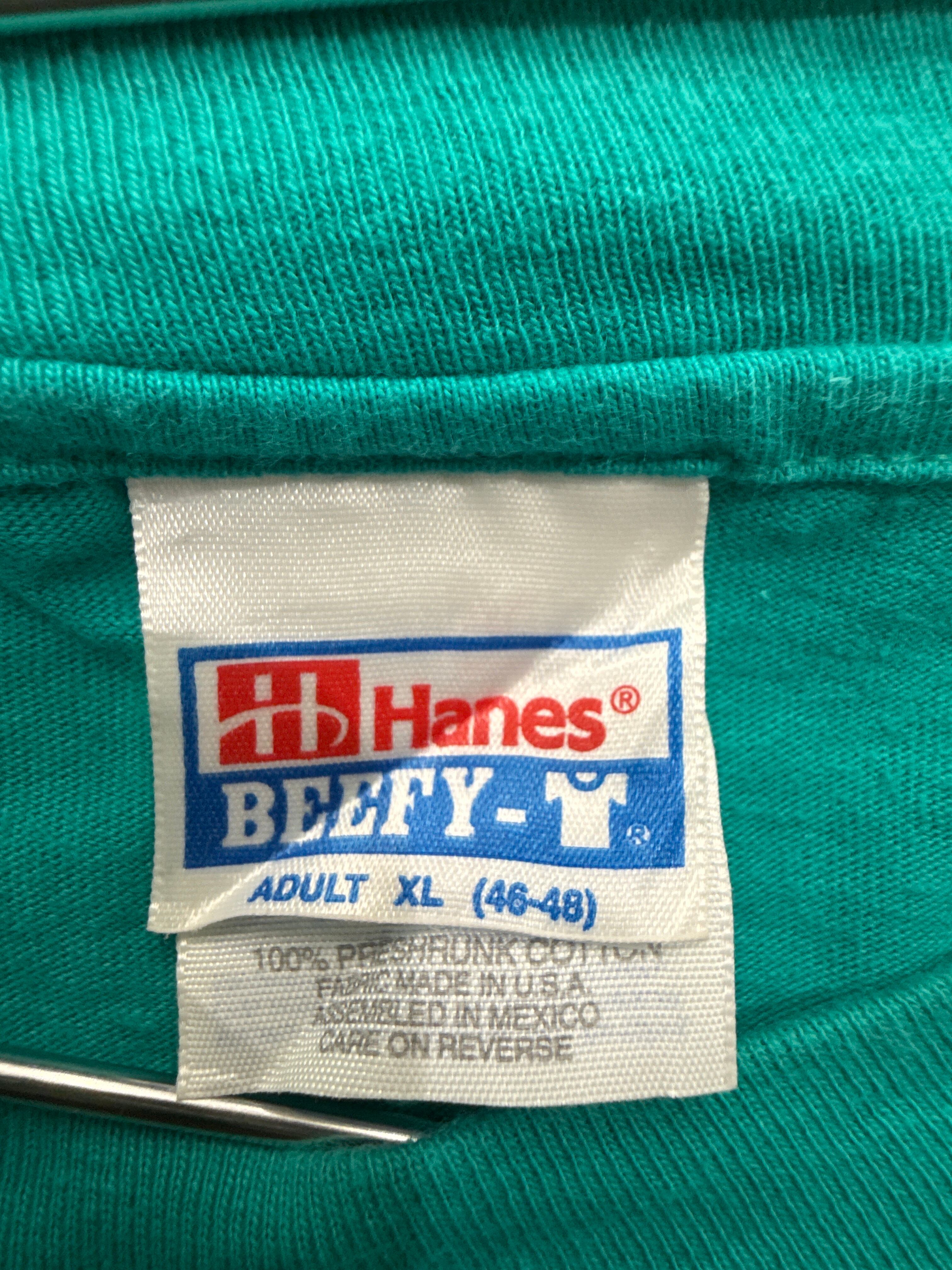 ボディはUSA製生地を使用したHanes BEEFY-T、サイズはゆったり目のXL。企業Tならではのユーモアと、90年代グラフィックの魅力が詰まった一枚です。