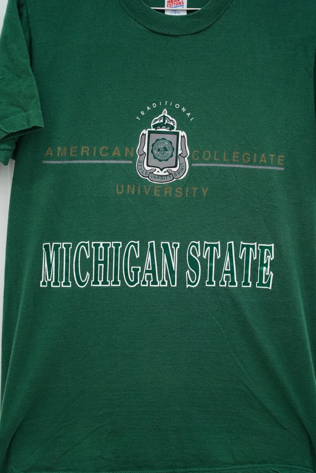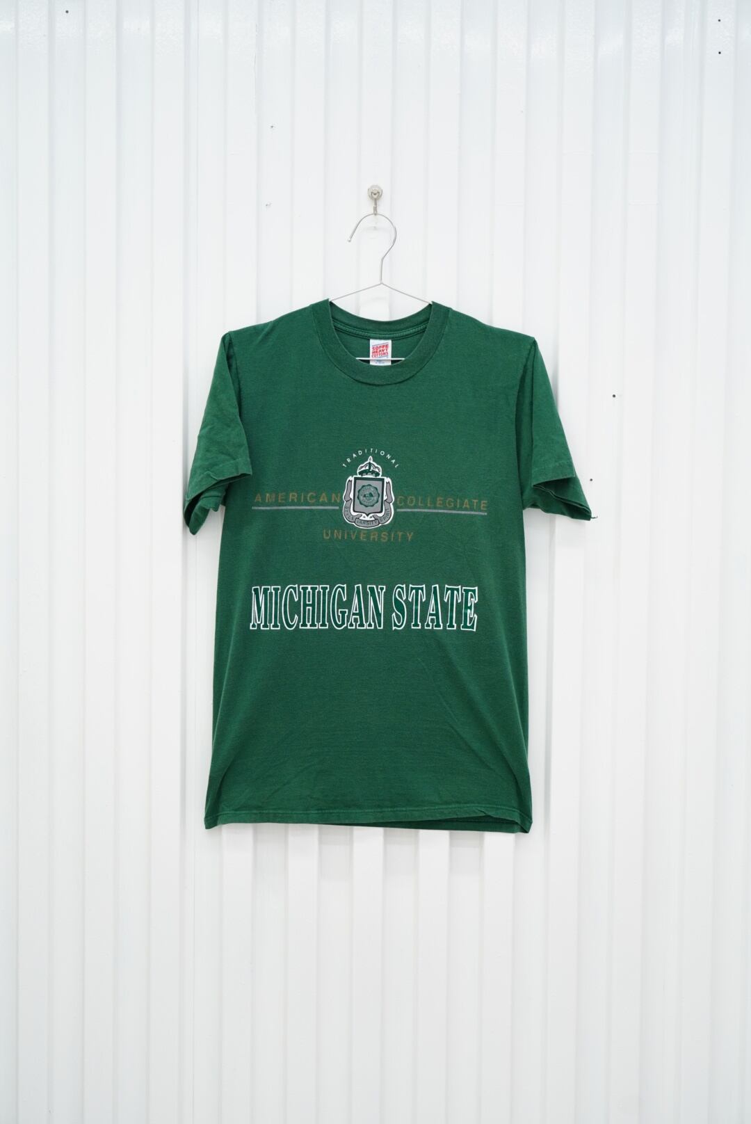 定番のミシガンステートロゴに、90年代らしい盾ロゴとアメリカンカレッジのエッセンスが詰まった1枚。