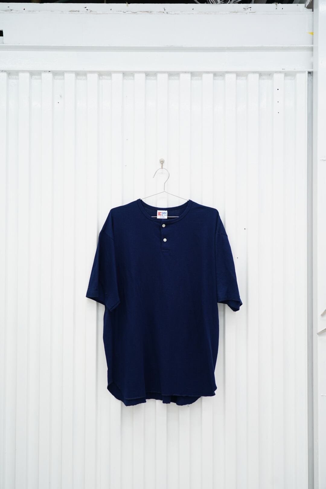 深いネイビーボディに2つボタンのヘンリーネック仕様。シンプルながらも無骨さのあるEAGLE USA製。丸胴・USA製ボディで、スタイルを選ばず着回せる1枚です。