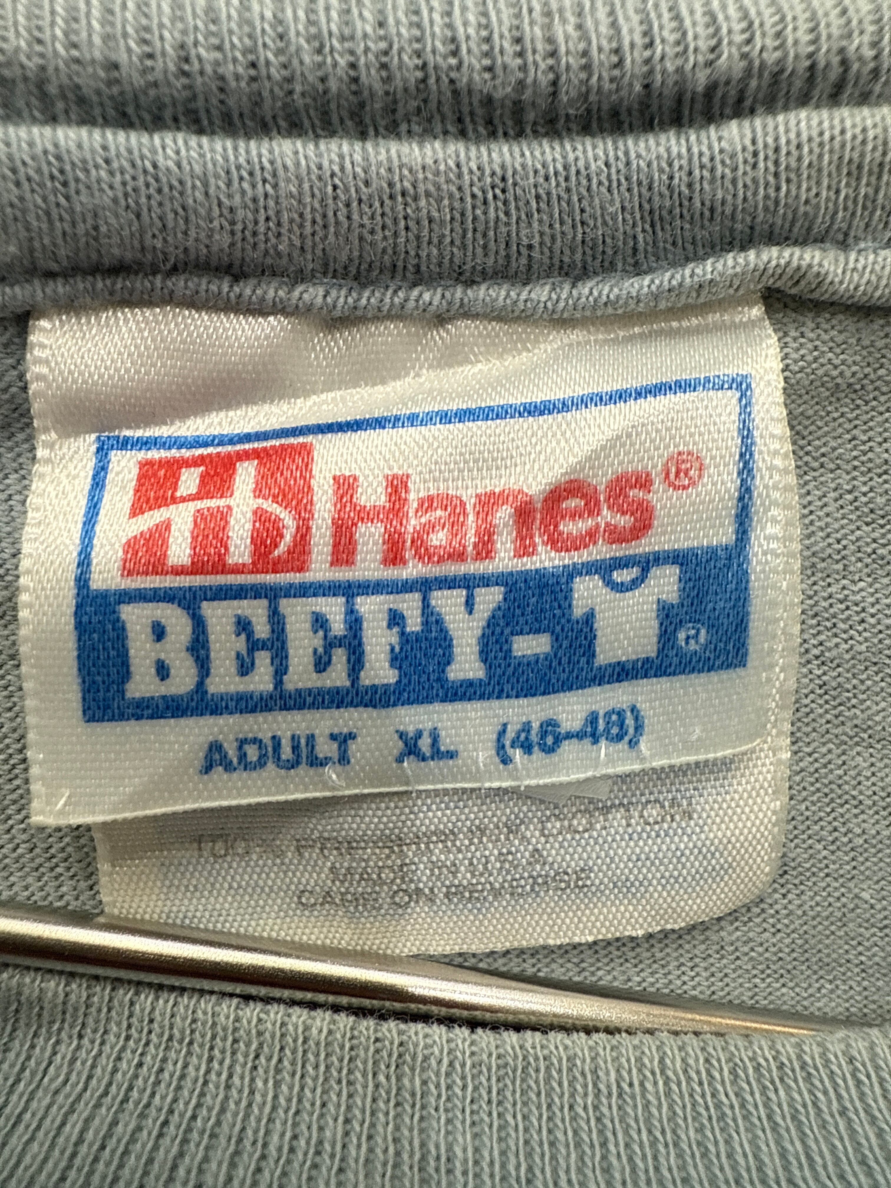 ボディは90年代製のHanes BEEFY-T、丸胴・袖裾シングルステッチ。
