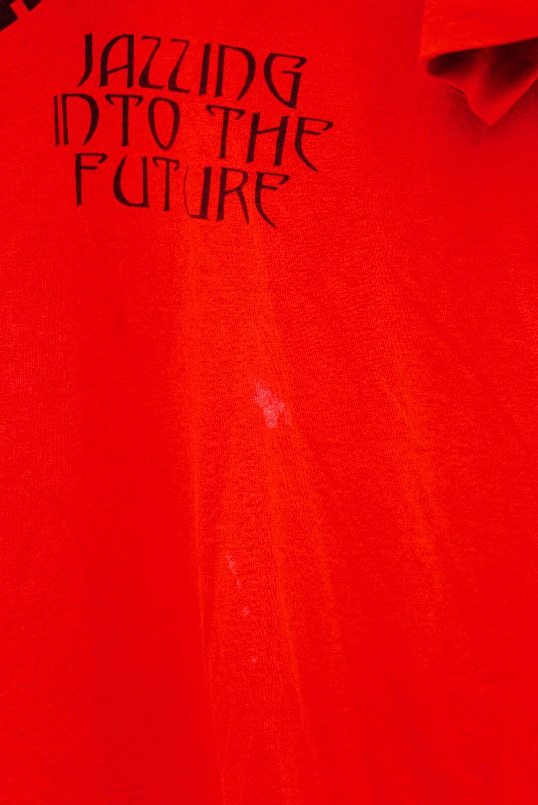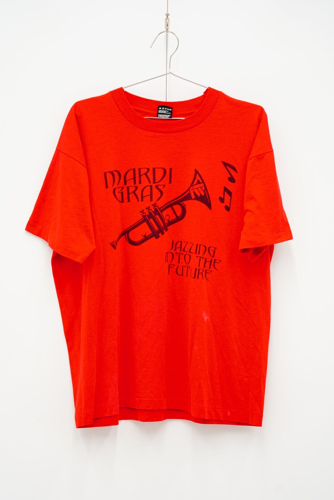 90年代FRUIT OF THE LOOM製の「MARDI GRAS – JAZZING INTO THE FUTURE」プリントTシャツ。