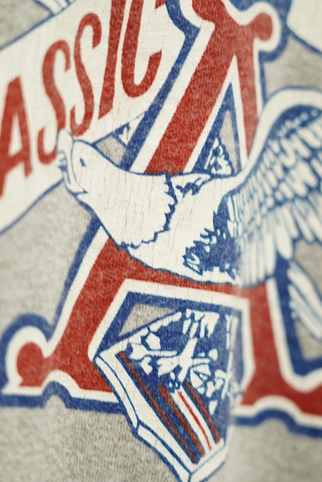柔らかく馴染んだグレーボディに、プリントの割れ感が絶妙。