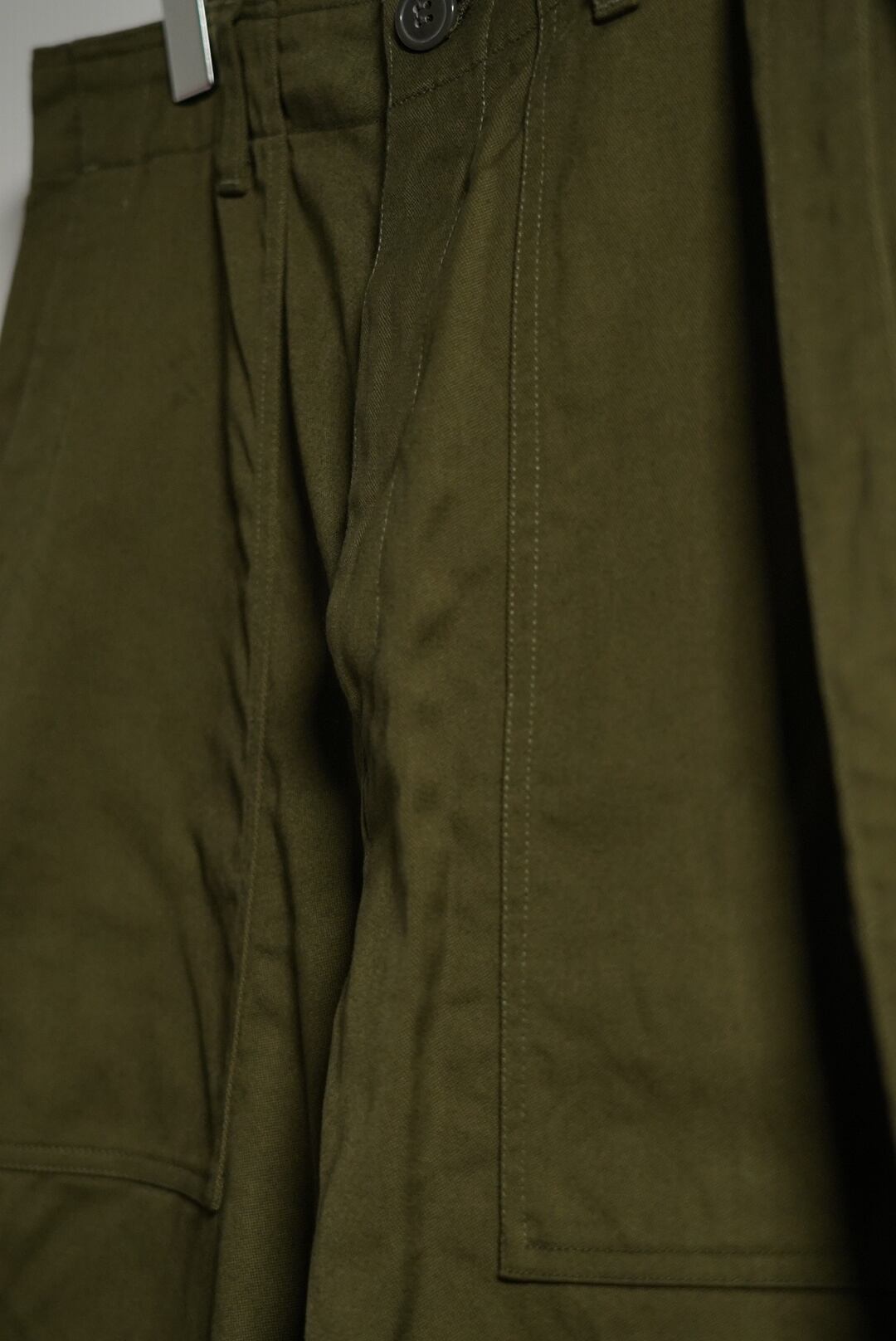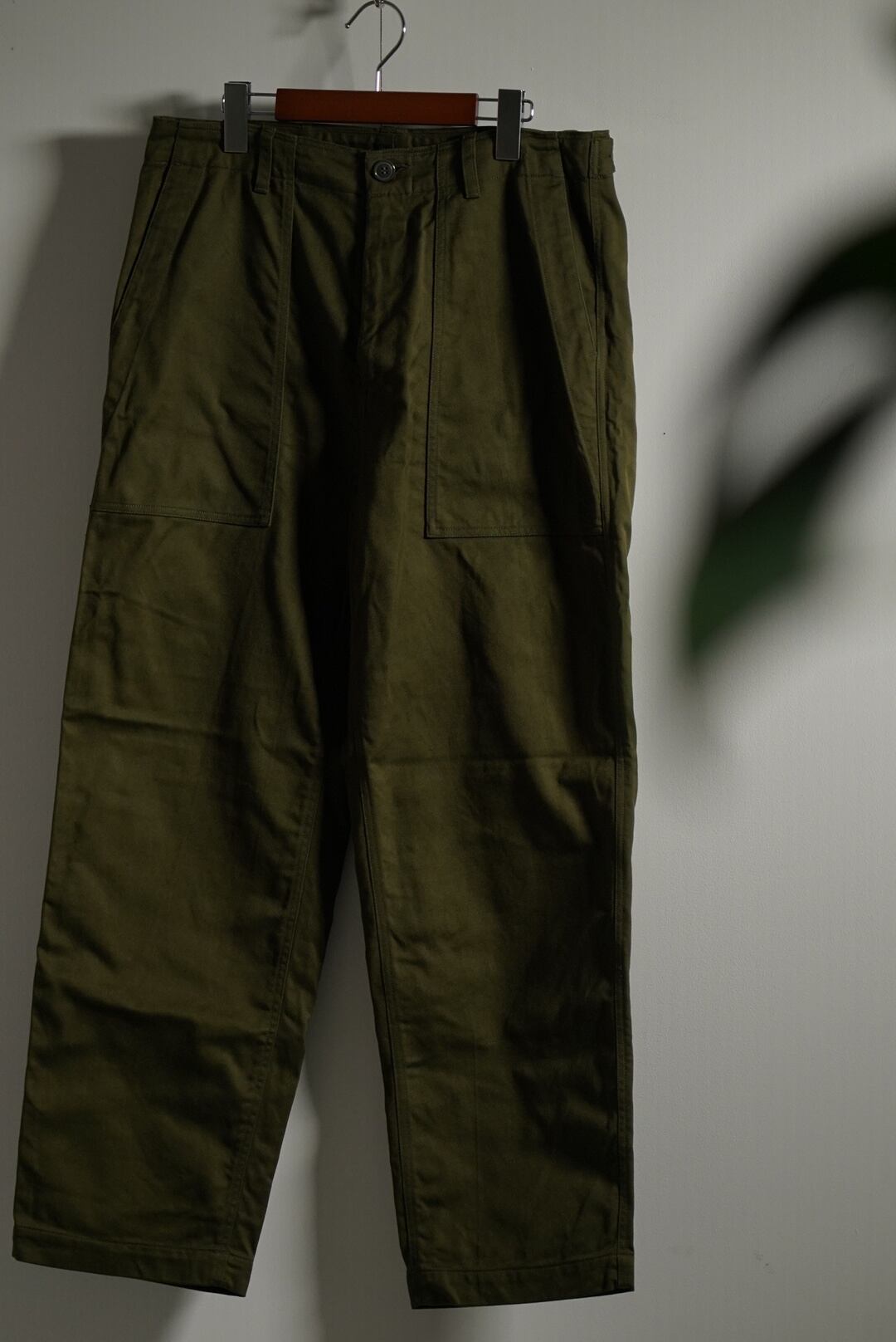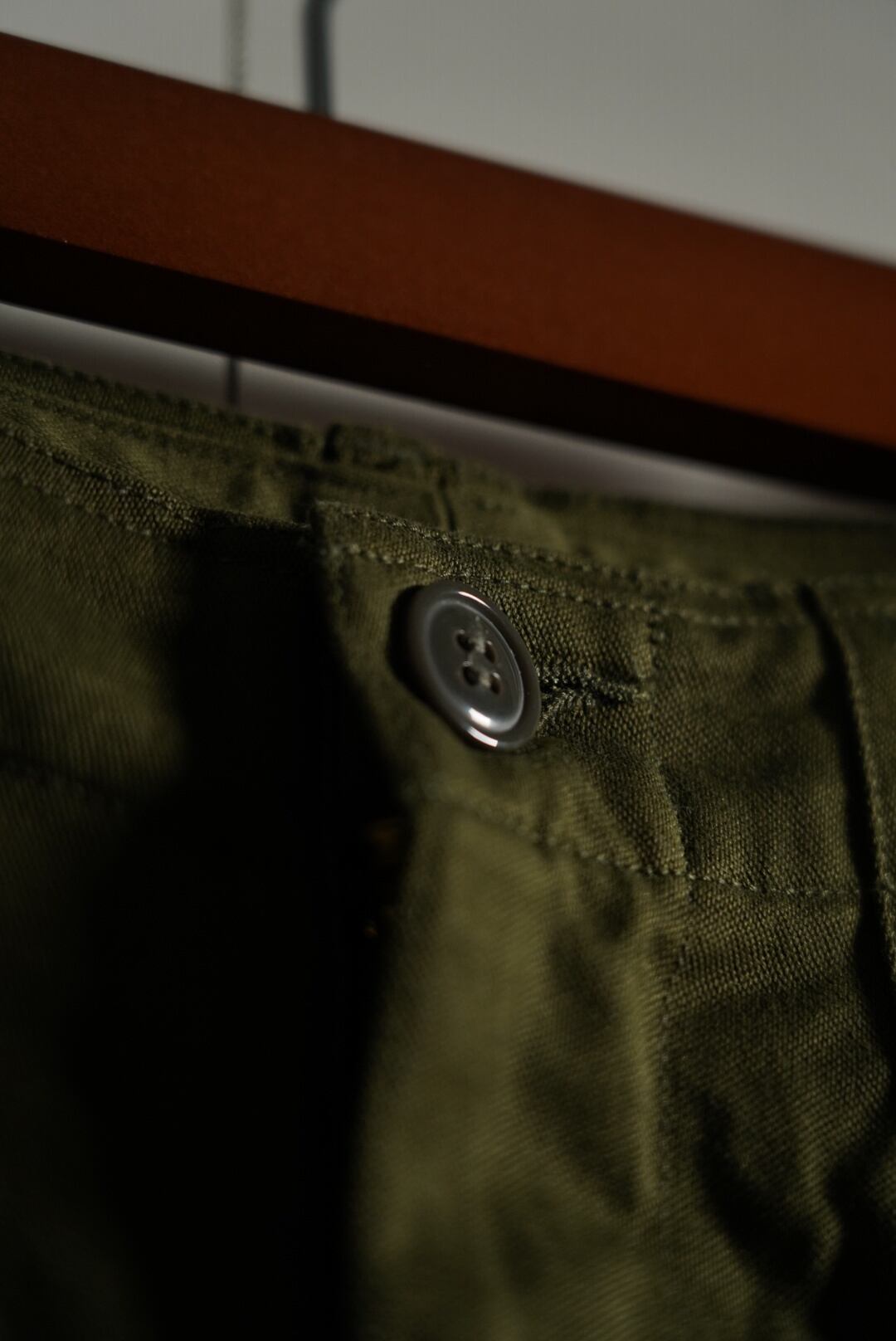生地には90年代デッドストックのコットンサージ(OLIVE)や、11.5オンスのデニム(DENIM)、コットンウールのヘリンボーン(BLACK)を使用。