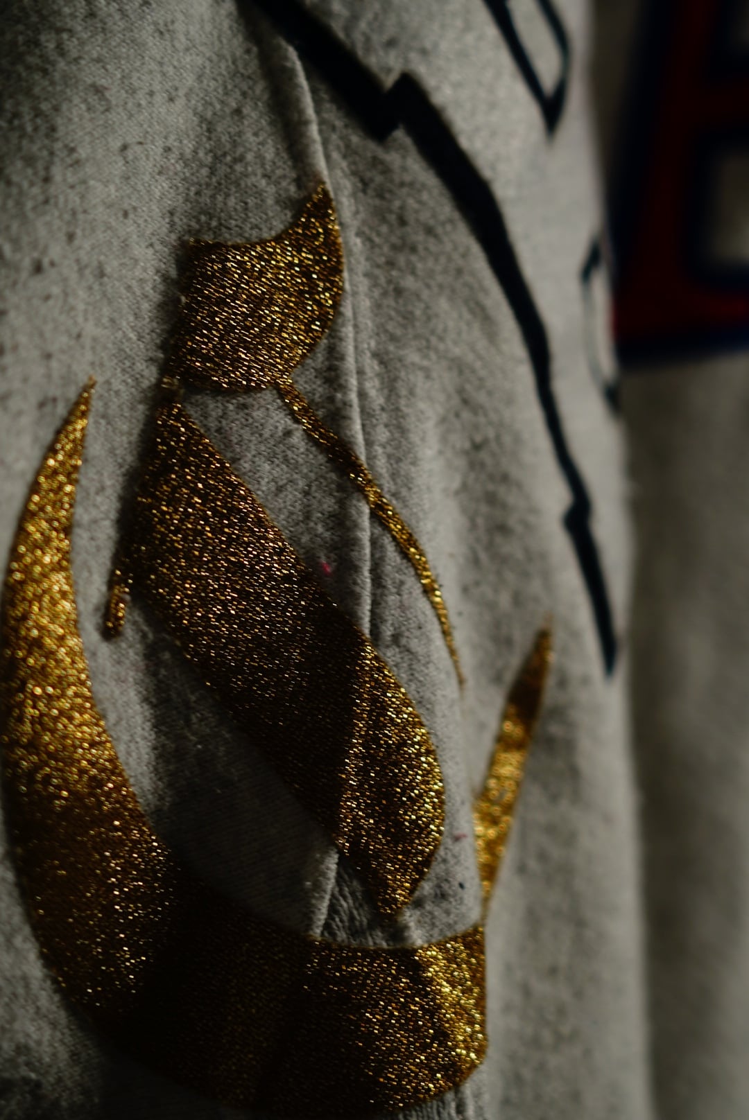 赤・青・ゴールドの配色が、90年代らしい強さを残しつつ、