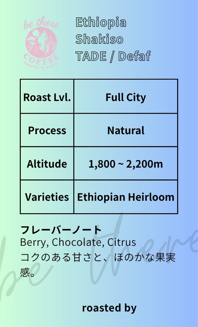 【デカフェ】エチオピア シャキッソ TADE / 【Decaf】Ethiopia Shakiso TADE