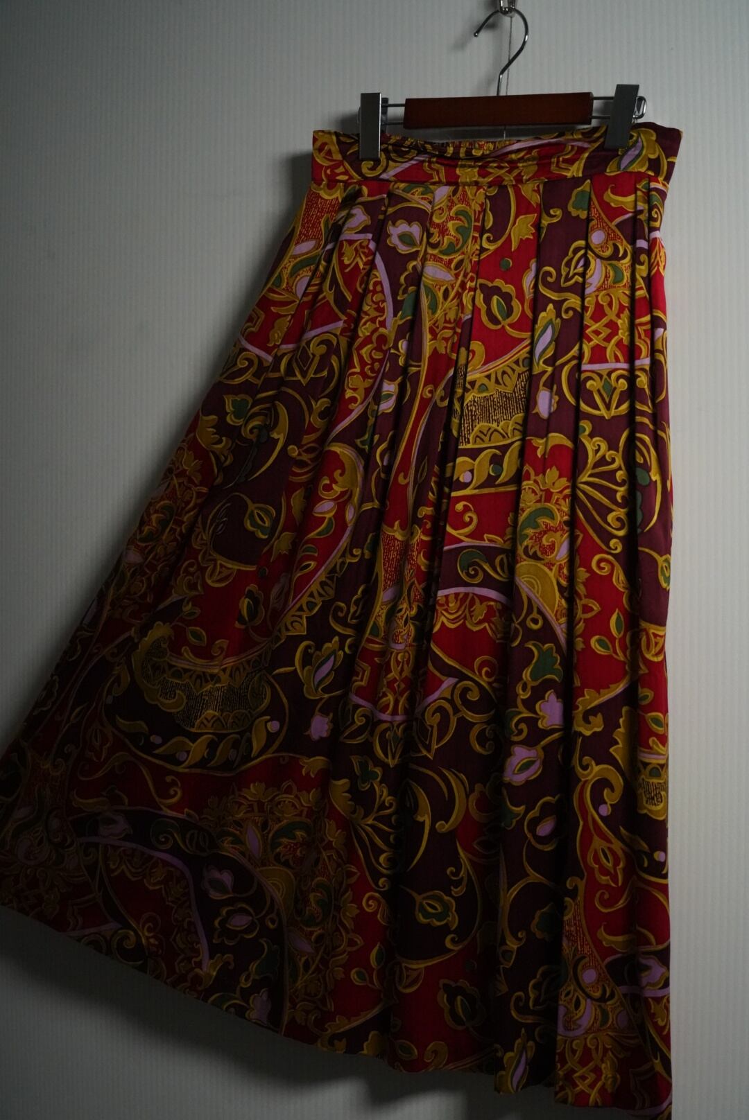 90年代らしいバロック&エスニックミックスな柄使いと、ウエストシャーリングでストレスフリーな穿き心地が魅力の一枚。